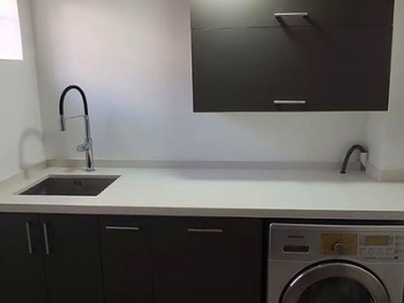 Color titanio en las puertas. Cuarzo blanco snow en la cubierta.