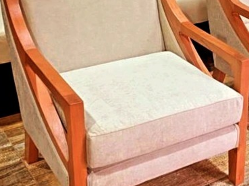 Sillon Individual moderno de madera tapizado en color blanco