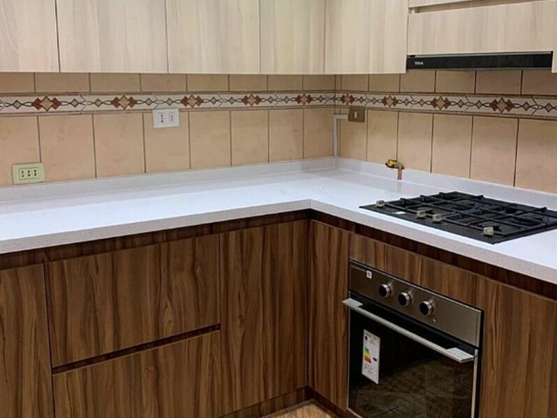 Los muebles de cocina de melamina son populares por su durabilidad y versatilidad. La melamina es un material económico y resistente a la humedad, lo que la hace ideal para cocinas.