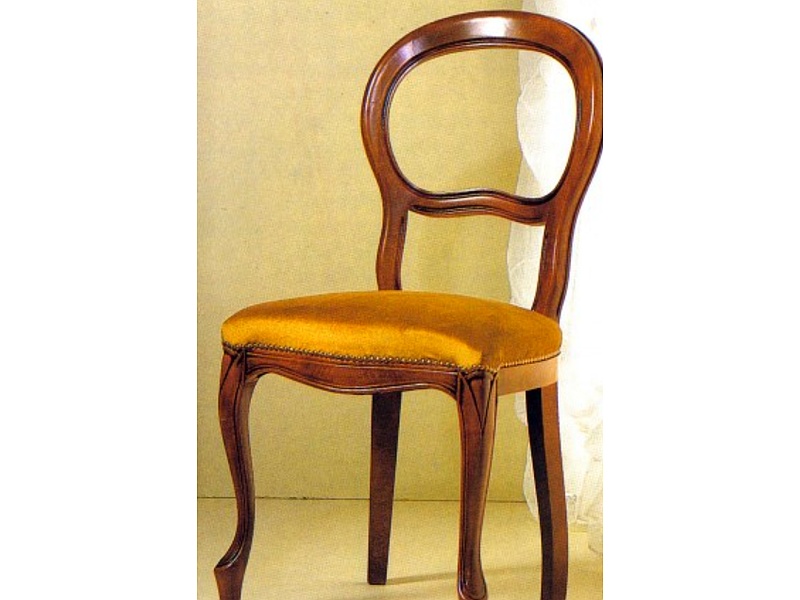 Silla fabricada en raulí y barnizada en nogal. La tela es a elección del cliente.