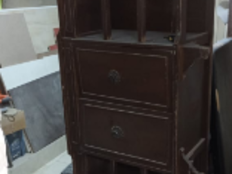 Armario compacto con puertas y posiblemente cajones. Perfecto para almacenar ropa, utensilios o artículos diversos.