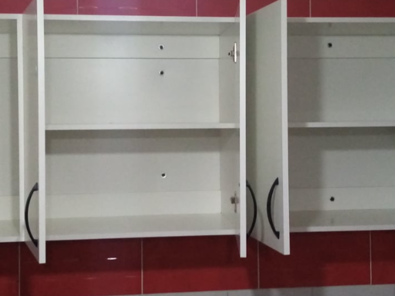 Una alacena grande de cocina es un mueble de almacenamiento espacioso diseñado para organizar y guardar utensilios, alimentos y otros artículos esenciales en la cocina. Fabricada típicamente en materiales como madera, melamina o laminado, una alacena grande ofrece múltiples estantes, cajones y compartimentos para proporcionar un amplio espacio de almacenamiento. Este tipo de mueble puede tener puertas con bisagras o correderas para facilitar el acceso y mantener los objetos protegidos del polvo y la humedad, contribuyendo así a mantener una cocina organizada y funcional.