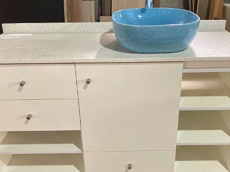 Elegante y funcional, este mueble ofrece un toque de luminosidad y amplitud a tu espacio. Con diseño moderno y amplio almacenamiento, es la elección ideal para un baño contemporáneo y organizado.