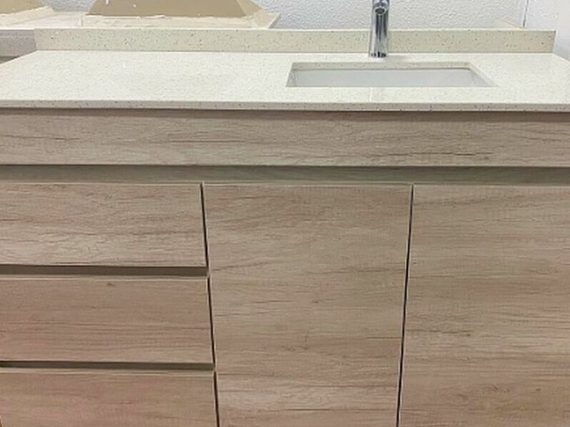 Mueble de baño con mesón de cuarzo: Un diseño elegante y funcional que combina a la perfección estilo y durabilidad. Aporta un toque de lujo a tu cuarto de baño con este mueble de alta calidad.
