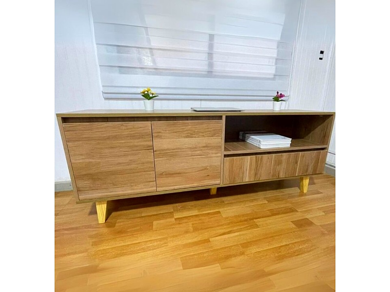 El rack de TV para 56" con pata de madera combina un diseño elegante y funcional, ideal para realzar tu sala de estar. Su estructura robusta proporciona un soporte seguro para televisores grandes, mientras que la pata de madera añade un toque de calidez y sofisticación. Además, cuenta con espacios de almacenamiento para dispositivos electrónicos y accesorios, manteniendo el área ordenada y estilizada.