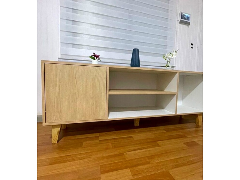 El rack de TV Pia combina un diseño moderno con funcionalidad, convirtiéndose en el complemento perfecto para tu sala de estar. Con un acabado elegante y líneas limpias, este rack ofrece un soporte seguro para tu televisor y cuenta con espacios de almacenamiento para dispositivos multimedia y accesorios. Su estructura robusta asegura durabilidad, mientras que su estilo contemporáneo realza la estética de cualquier espacio.