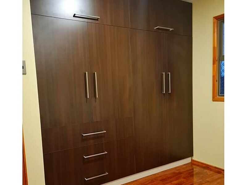 Closet empotrado 4 puertas en melamina color wengue.