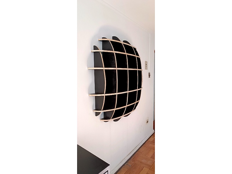Repisa colgante ovalada, hecho con terciado pino mueblista, pintado en color negro semi brillo. Terminado