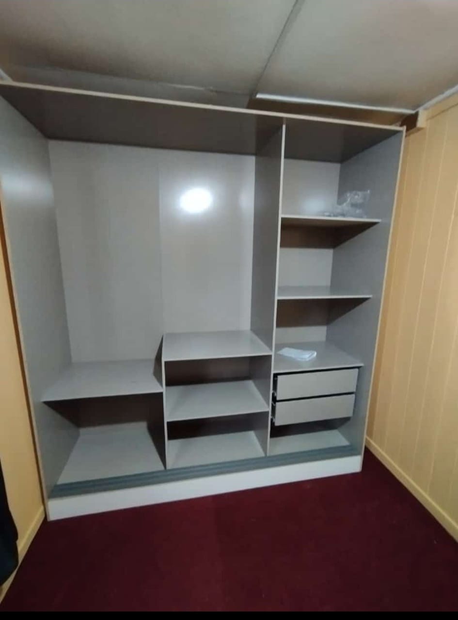 El closet moderno gris es una pieza de mobiliario contemporánea que combina funcionalidad y estilo. Su color neutro y elegante se adapta a diversas decoraciones, ofreciendo un almacenamiento eficiente para ropa y accesorios en dormitorios o vestidores.