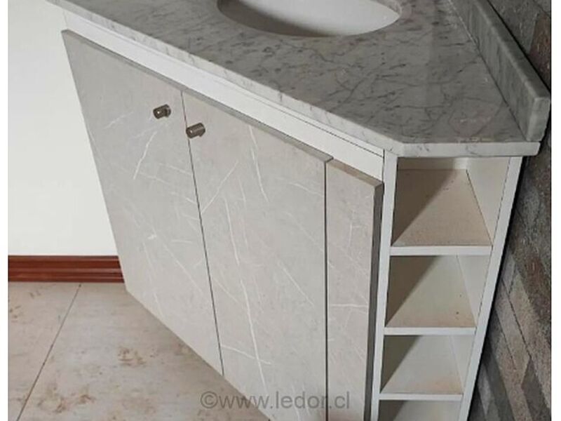 Mueble de baño constituido por un lavatorio alojado en una mesada con cajones y estantes, y por lo común puertas.