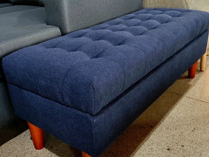 La banqueta Porto presenta un diseño compacto y funcional con dimensiones de 1,20 metros de largo y 0,45 metros de ancho, ideal para espacios reducidos o como complemento en cualquier área de la casa.