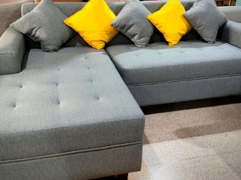 El seccional en L es una opción espaciosa y versátil para tu sala de estar, con medidas de 2,15 metros de largo en un lado y 1,50 metros en el otro, ofreciendo amplitud y comodidad para toda la familia.