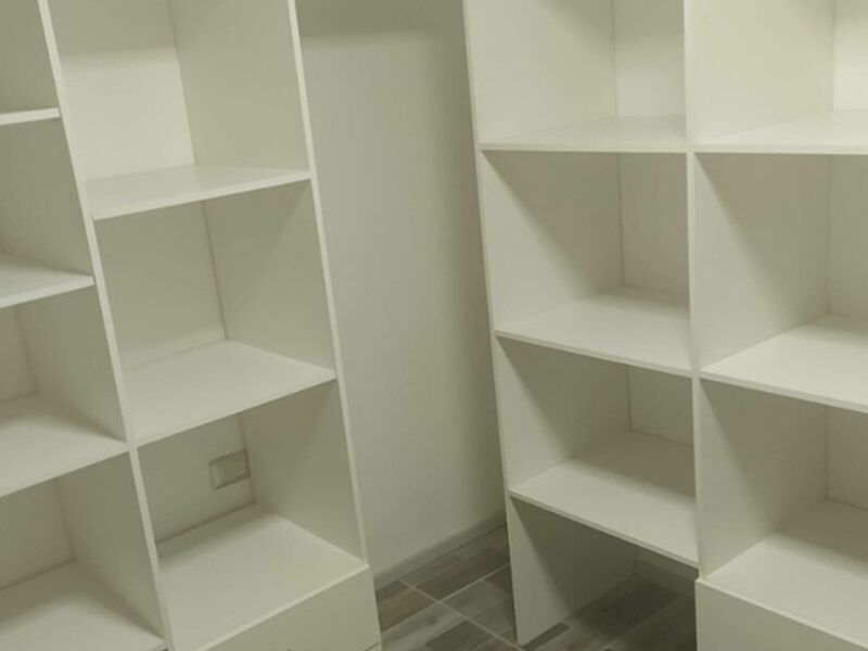 Espacio de almacenamiento abierto y organizado, diseñado específicamente para guardar y ordenar ropa, zapatos y accesorios.