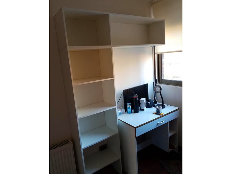 Escritorio blanco, diseñado para oficinas o estudios con un estilo minimalista que aporta amplitud y orden visual. Este escritorio, con materiales de alta resistencia, cuenta con una superficie amplia y compartimentos adicionales para mantener todo organizado y accesible.