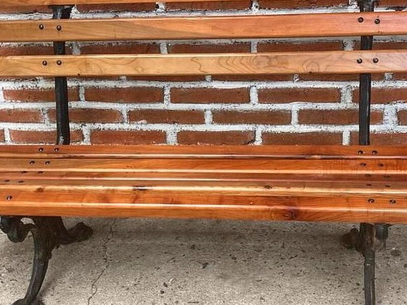 Escaño de roble con fierro forjado, sumamente firme y duradero.
