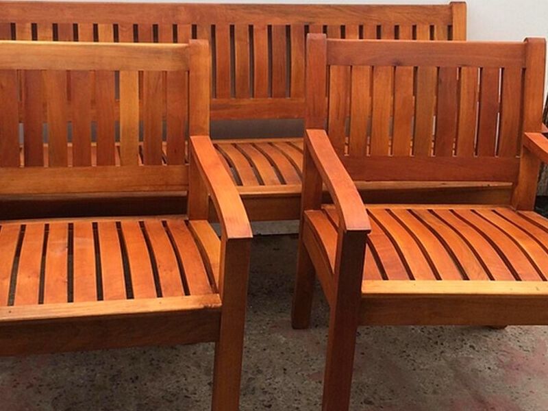 Juego de terraza 100% en madera de Raulí.