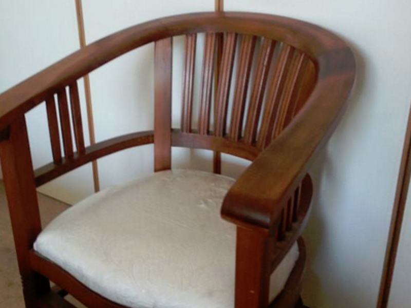 Sitial herradura, confeccionado en madera raulí, tapiz.