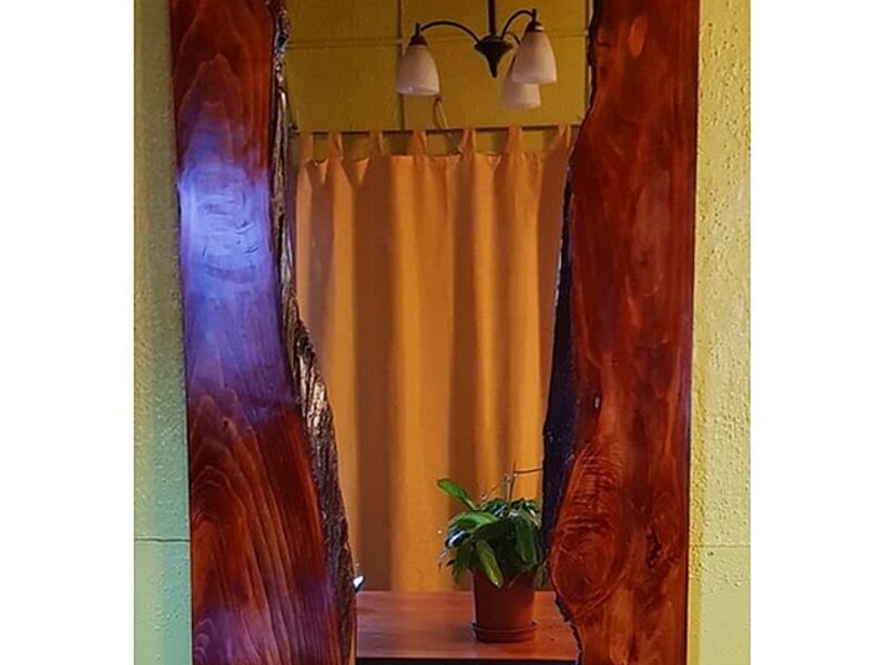 Espejo rústico con marco de madera en ciprés.