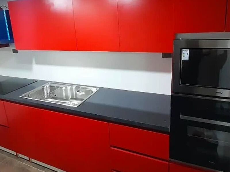 Una cocina con acabados en tono rojo vibrante, diseñada para dar un toque de energía y modernidad al espacio.