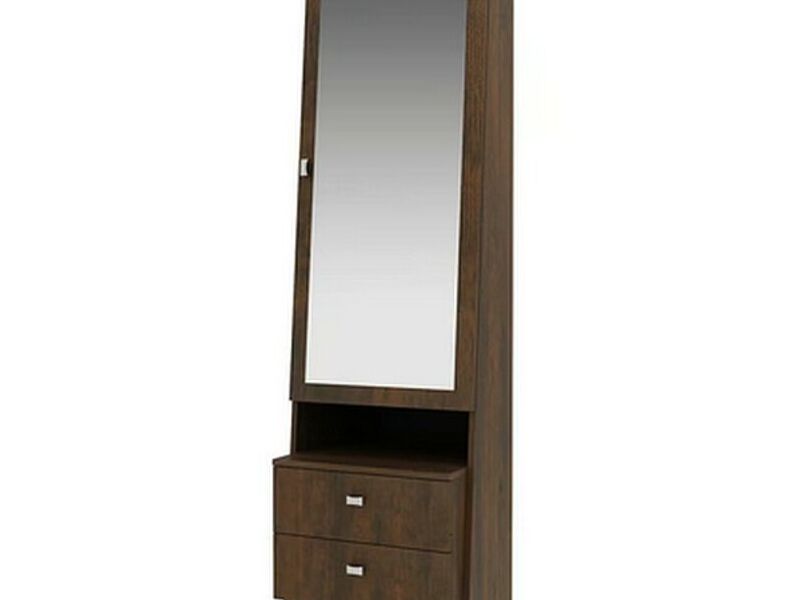 Tocador con espejo 2 cajones y colgantes de metal rústico.