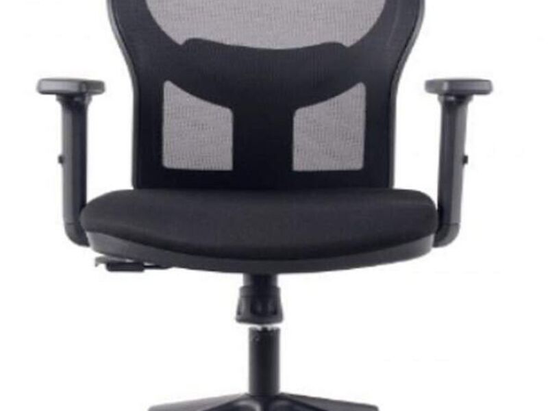 Silla ejecutiva con mecanismo sincrónico, fijación en múltiples posiciones y sistema de tensión regulable. Respaldo de malla y apoyo lumbar graduable en altura.
