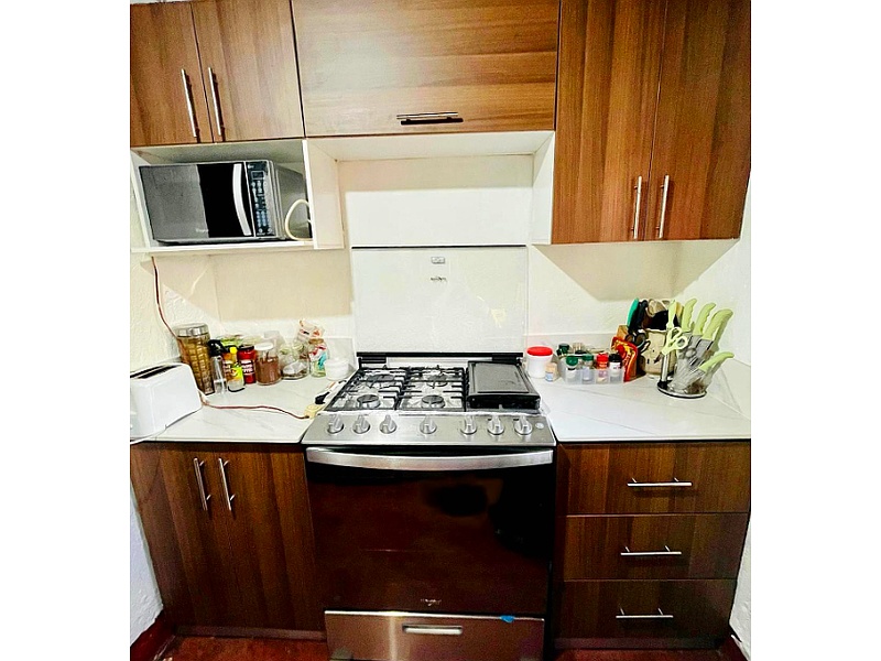El mueble alacena en nogal ofrece un toque de elegancia y calidez, proporcionando un almacenamiento funcional y sofisticado que complementa perfectamente cualquier cocina.