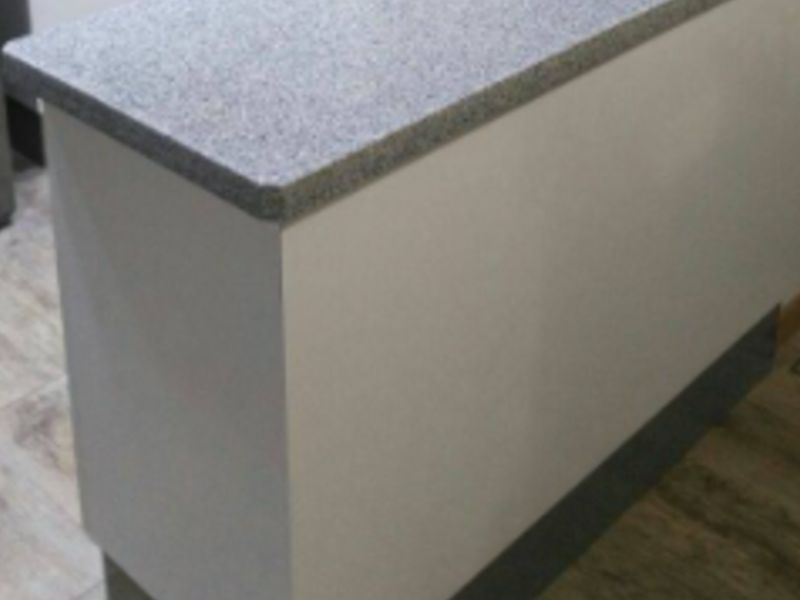 Cocina con puertas enchapadas lamitech canto recto y cubiertas de granito