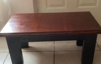 Mesa de comedor de madera oscura, con un diseño elegante y clásico. Ideal para ambientes formales.