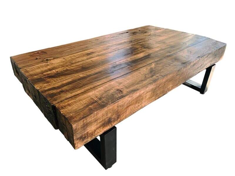 Mesa de Durmientes de tren reutilizados. Para su creación se utilizan piezas de madera grandes, que nos entregan esa sensación única de un mueble robusto y poderoso.