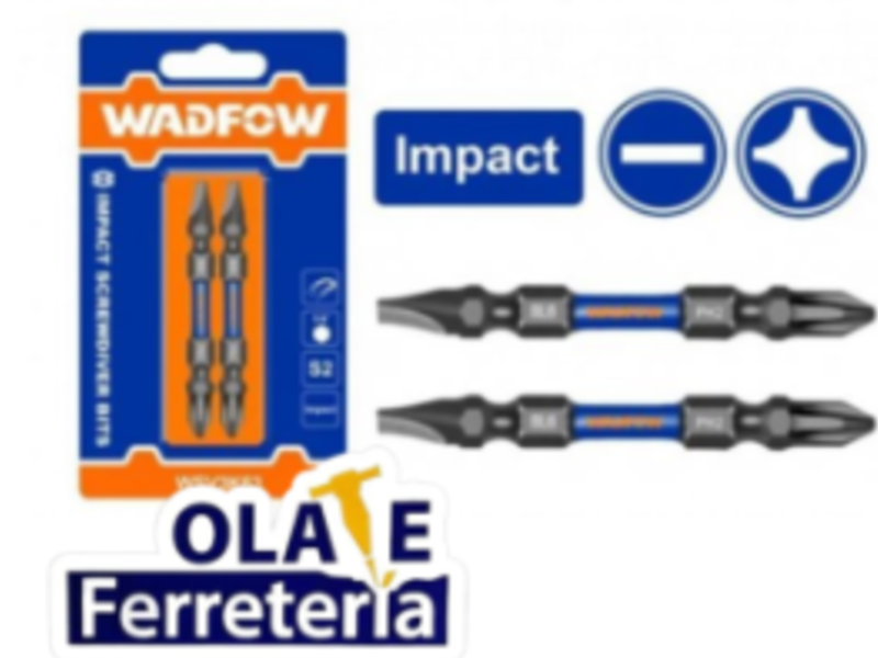 Punta de Destornillador de Impacto Marca: WADFOW Modelo: WSV3K63 Cabeza: PH2 + SL6.0 Set de 2 unidades Puntas magnetizadas