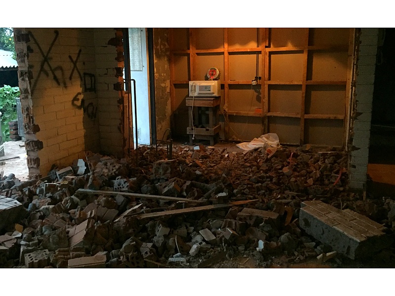 Baño , retiro de tina, reemplazo de paneles con internit y armado en palos. Cerámicas mixtas en piso, paredes. Shower door, instalación eléctrica, cañerías, muebles y artefactos..