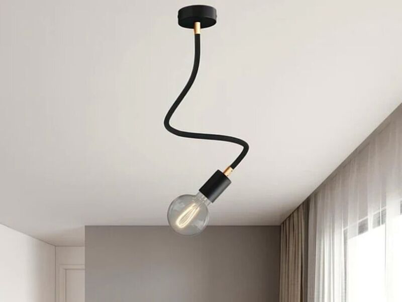 FLEX, el tubo flexible recubierto de tela negra, es ideal para crear lámparas colgantes de una o varias caídas inspiradas en las ideas más imaginativas, la tuya.