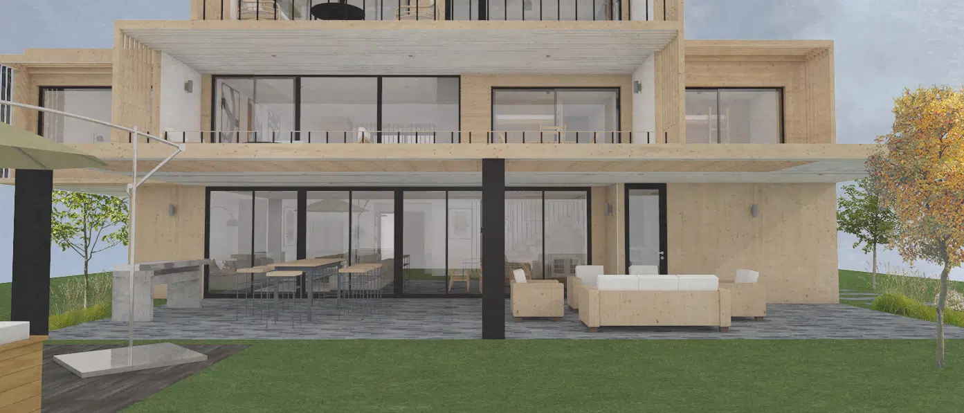 Vivienda proyectada en madera, acero y piedra.