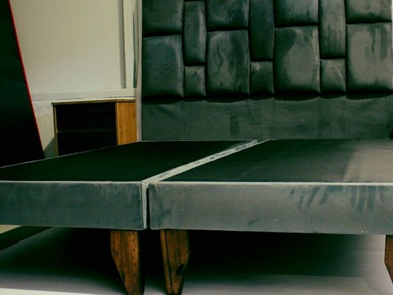 Panda muebleria tiene para ti este hermoso diseño 3D DELUXE PREMIUM Base europea dividida 1.90 x 1.50 hecha de madera de pino tratado y felpa incluya respaldo de piso a pared, base y patas