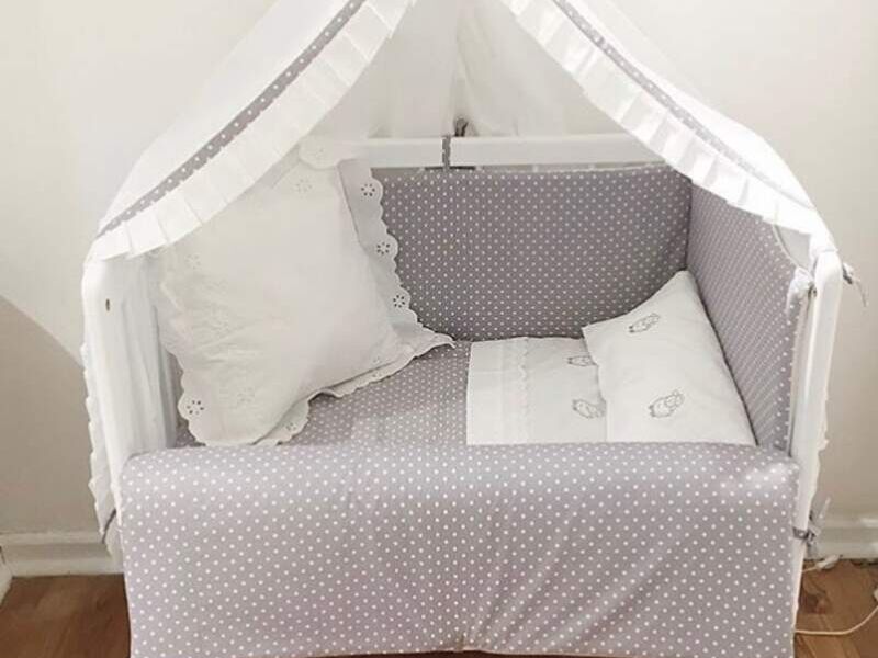 Nuestra Cuna colecho incluye colchón, sábanas, cabecera y cobertor todo confeccionado por Petittom