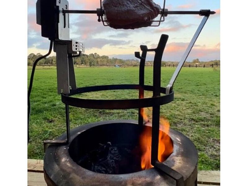 Incluye bracket soporte, espiedo y parrilla acero inoxidable.