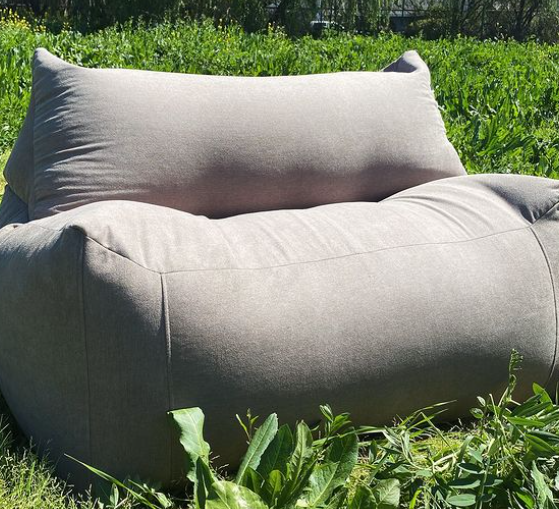 Banco reclinable de color beige para exteriores, con un diseño elegante y relajante.