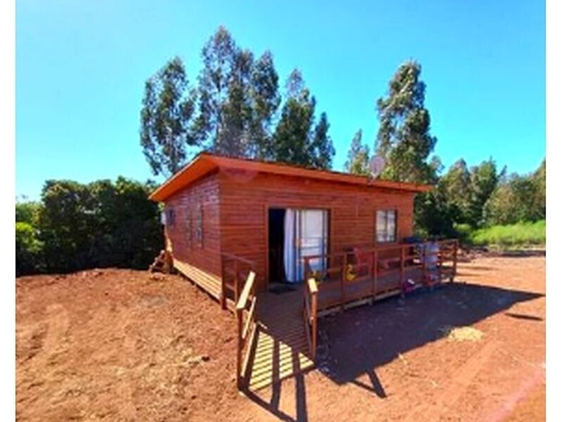 La casa presenta una fachada revestida con madera natural, proporcionando un aspecto rústico y tradicional.
