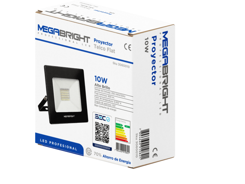 Potencia: 10w Temperatura Color: 3000K - 6000K Voltaje: 220-240V 50hz IP: 65 Flujo Luminoso: 800 lm Material: Aluminio y Vidrio Templado