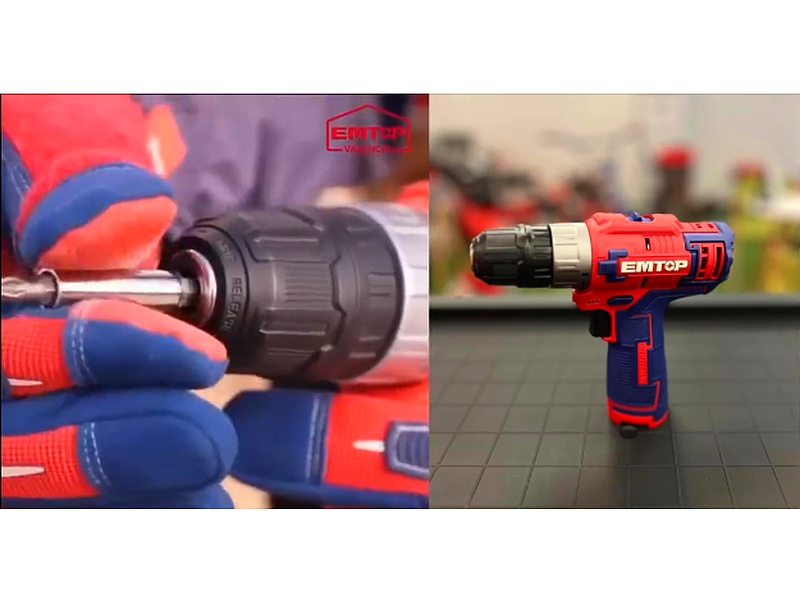 Taladro inalámbrico de iones de litio EMTOP de 12 V y 1,5 Ah con 1 batería, 1 cargador, 2 brocas