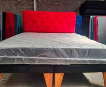 Cama rojo vibrante de tres plazas, ideal para un toque de color en la decoración.
