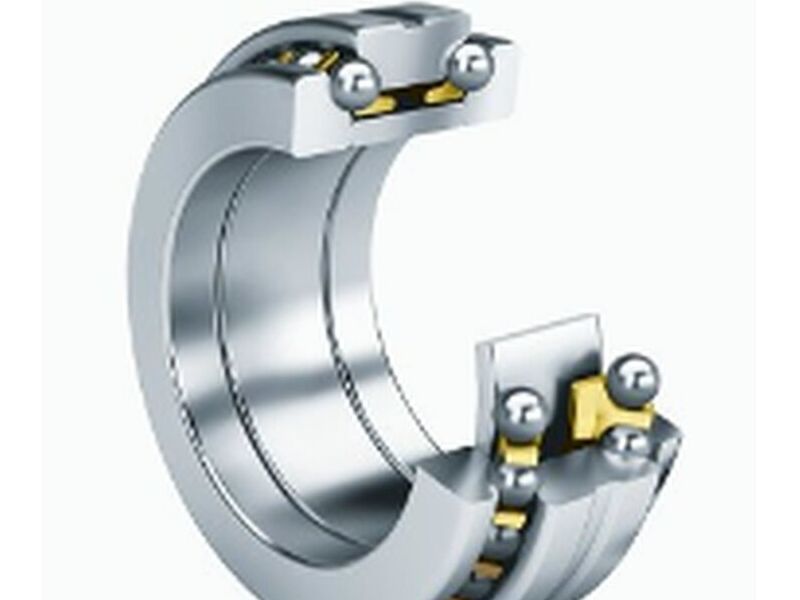 Los rodamientos axiales de bolas de contacto angular, de doble efecto, son rodamientos de precisión no autorretenidos, con tolerancias restringidas, en la clase de precisión SP. Están formados por un anillo de eje macizo, un anillo distanciador, un anillo de alojamiento así como coronas de bolas con jaulas macizas de latón.
