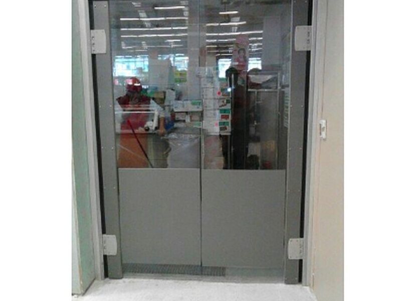 Puertas de fácil acceso debido a sus bisagras tipo vaivén, formadas por placas de policarbonato monolítico que entrega una puerta visualmente agradable e ideal para separar ambientes que requieran de un tránsito rápido, fluido sin perder la higiene de los sectores.