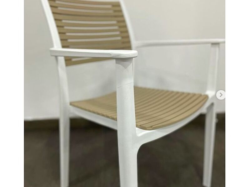 Legari es un modelo de silla pensada en exteriores, con una materialidad a prueba de el sol y la lluvia.