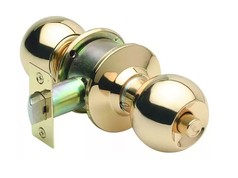 Cerradura cilíndrica con pomo, ideal para baños y dormitorios. Incluye chapa con llave, ofreciendo seguridad y un mecanismo de apertura cómodo y funcional para uso en interiores.