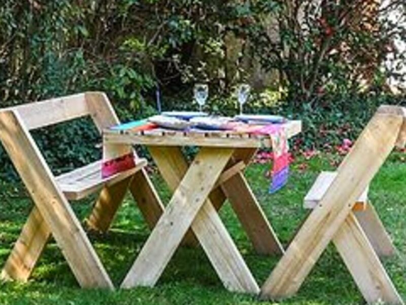 Mesa de terraza o jardín, disfruta al aire libre en la comodidad de tu casa con este set compuesto por una mesa y dos bancas, hecho a mano en madera de pino, diseñados para durar.