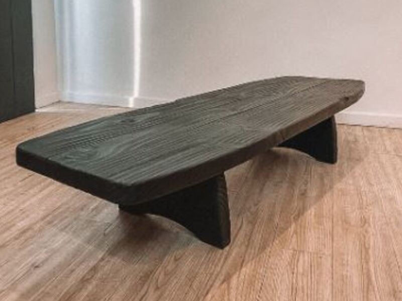 Conoce a una de nuestras mesas de centro, la mesa Lyon negra con bordes desgastados de madera de pino.