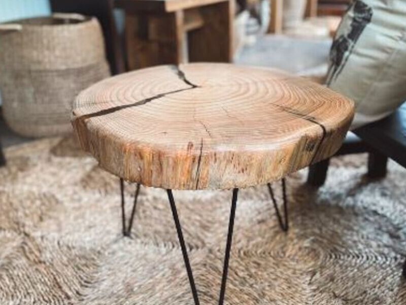 Conoce a una de nuestras mesas de centro, la mesa Rioja de rodaja de madera.