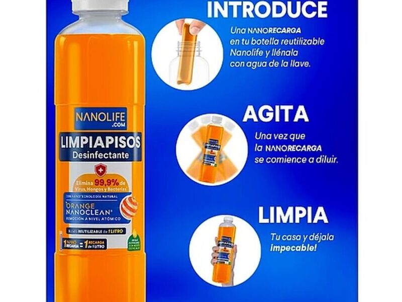 El Limpiapisos Desinfectante elimina 99,9% de hongos, virus y bacterias (ISP Registro N 6926/23 - N 6926/20). Su fórmula desarrollada con nanotecnología e ingredientes naturales alcanza un poder de remoción único gracias a Orange Nanoclean: nanocápsulas de aceite de cáscara de naranja tan pequeñas (96 nanómetros) que son capaces de penetrar cualquier tipo de mancha. Logra una limpieza profunda y desinfección efectiva para disfrutar de espacios limpios y seguros en tu hogar