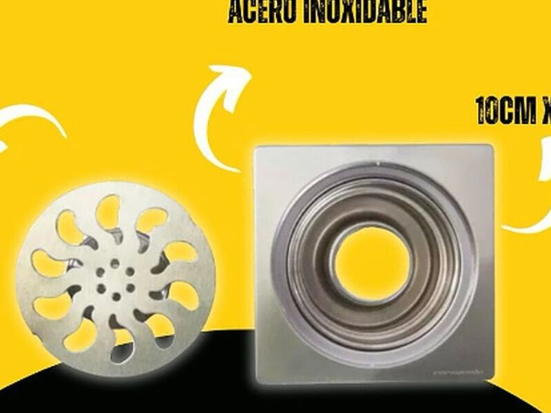 Pileta y Rejillas •Pileta y rejilla de acero inoxidable •Cuerpo de 10 cm x 10 cm •Rejilla de 78 mm de diámetro •Salida de 11/2” pulgada